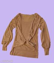 Очень красивая блузка золотистого цвета, украшенная железной пряжкой золотого цвета, очень хорошего качества состав: 60% - полиамид, 20% - вискоза, 10% - эластан, 10% - люрекс. Размер - L |