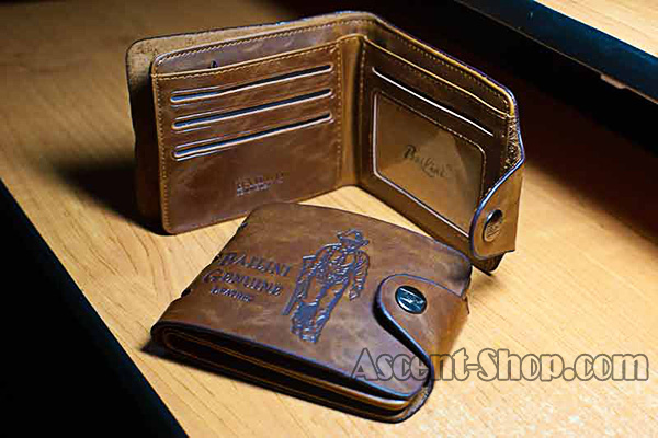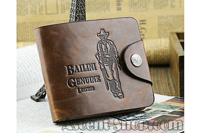 На лицевой стороне бумажника имеется надпись Bailini Genuine Leather (перевод - истинная кожа).