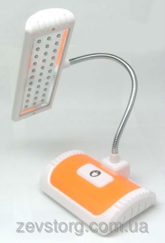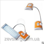 Настольная лампа содержит 33 ярких светодиода чисто белого свечения. Фонарь способен работать от встроенного аккумулятора до 8-10 часов благодаря мощному встроенному аккумулятору!