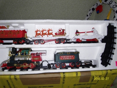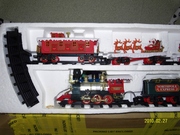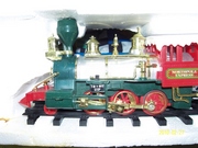 Детская железная дорога на батарейках.В состав входит паровоз и четыре вагона. |