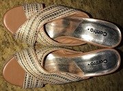 Продам сабо женские, 39 размер. Материал верха - текстиль, подошва - натуральная корка. Новые, не ношеные. Каблук очень устойчивый. |