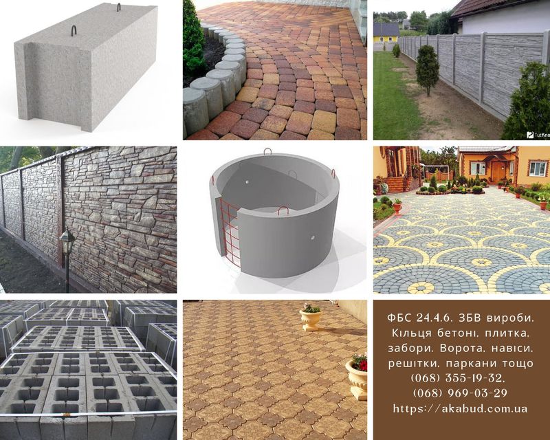 Плитка тротуарная, брусчатка, бетонные ограждения, шлакоблок, колодезные кольца, бордюры и поребрики. элементы ландшафтной архитектуры: производство и продажа в Украине